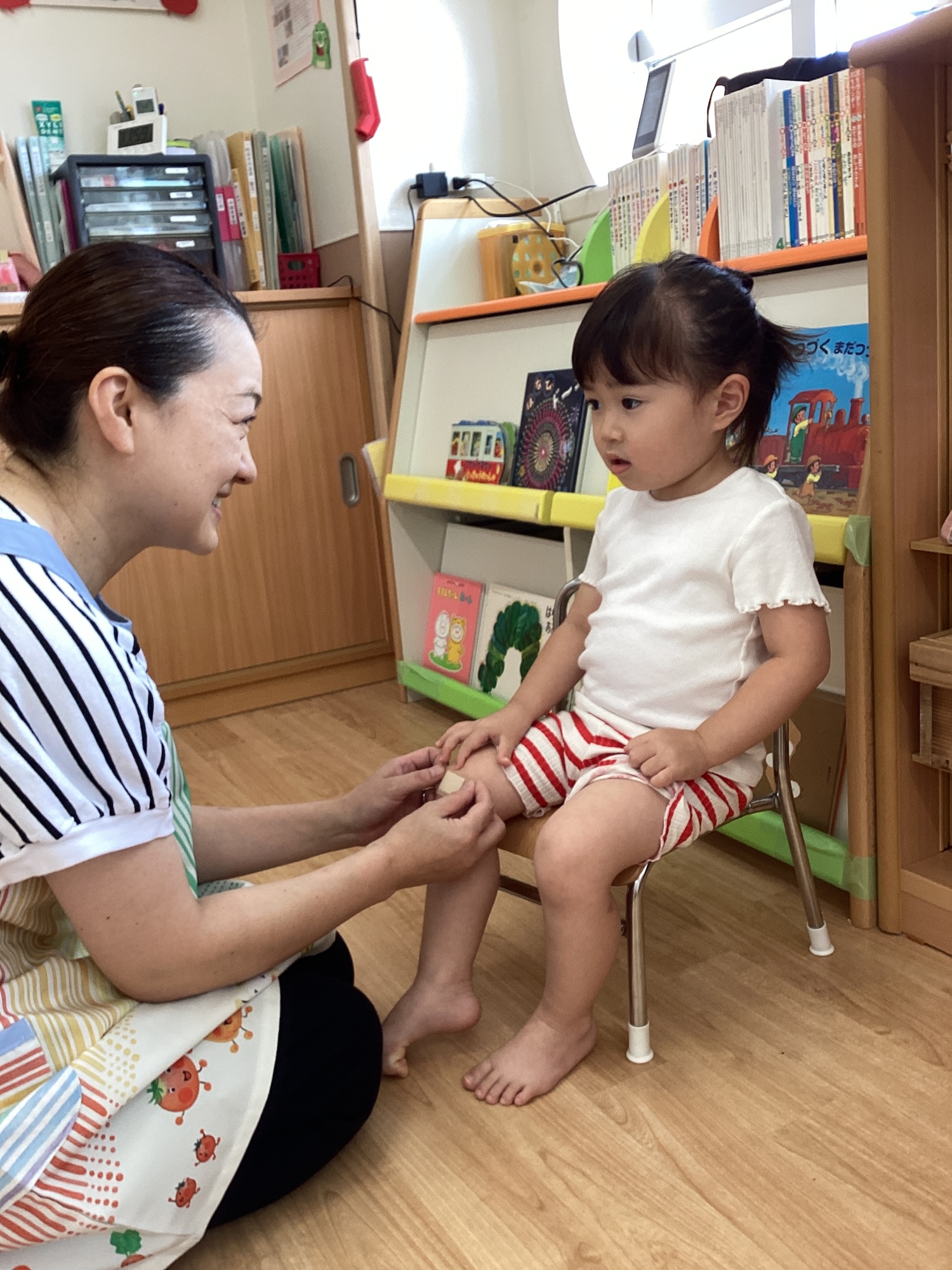 具体的には、園児の健康観察・体調不良やケガへの対応・感染予防・保健指導などを行っています。0歳児の園児についてはクラス活動にはいることもあります。