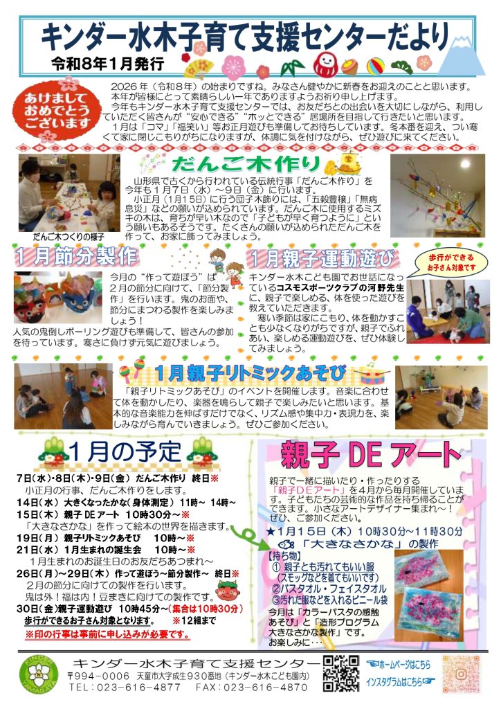 2026年1月キンダー水木子育て支援センターの予定をお知らせします🍀