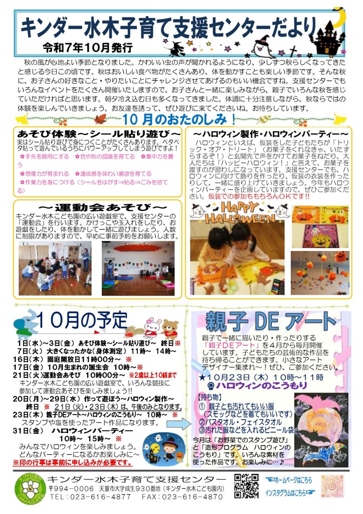 2025年10月キンダー南館子育て支援センターの予定をお知らせします🍀